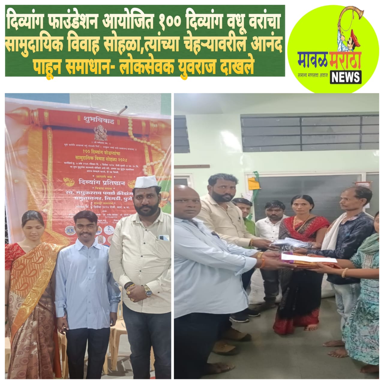 दिव्यांग फाउंडेशन आयोजित १०० दिव्यांग वधू वरांचा सामुदायिक विवाह सोहळा,त्यांच्या चेहऱ्यावरील आनंद पाहून समाधान-लोकसेवक युवराज दाखले