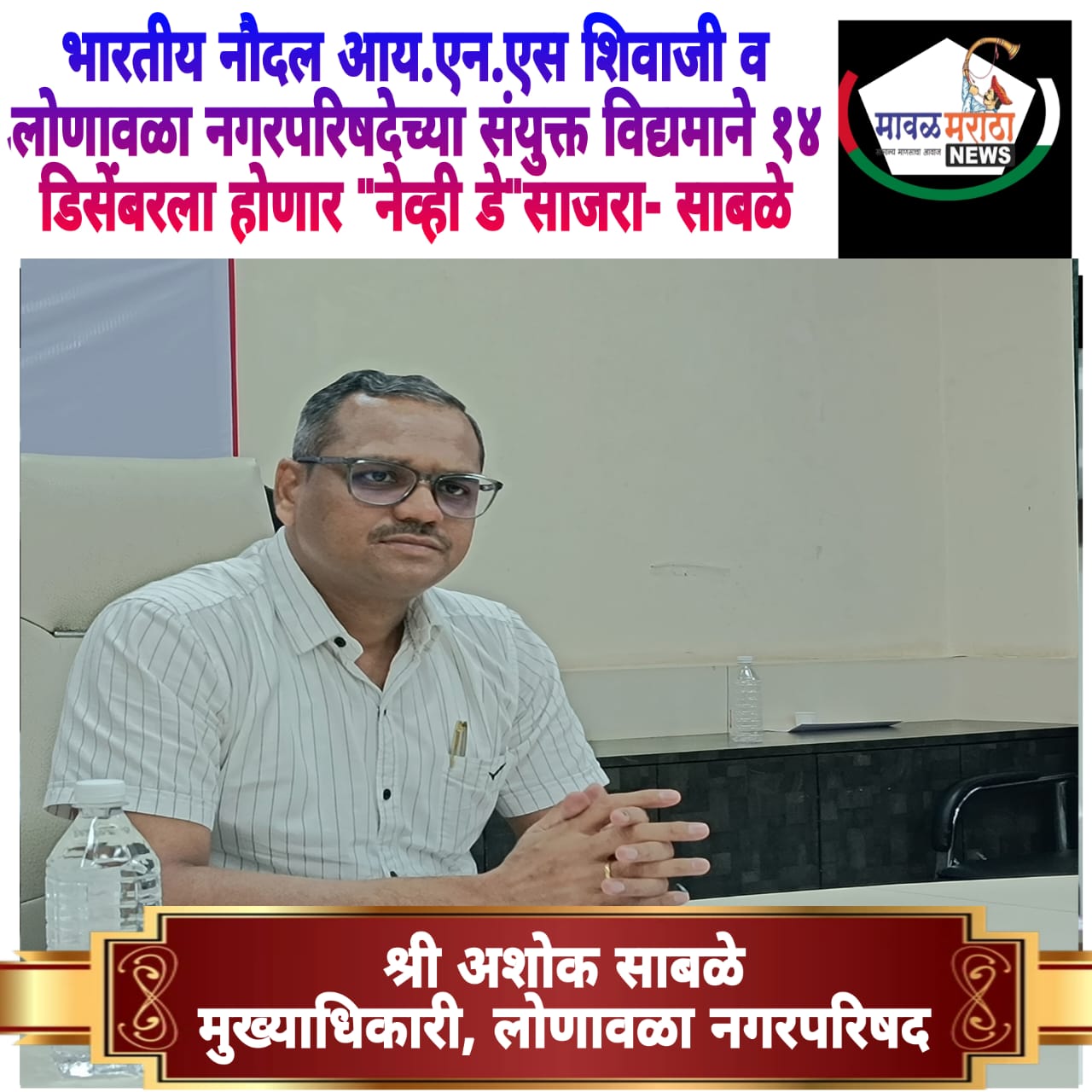 मावळ मराठा न्युज -लोणावळा,भारतीय नौदल आय.एन.एस शिवाजी व लोणावळा नगरपरिषदेच्या संयुक्त विद्यमाने दिनांक १४/१२/२०२४ रोजी डॉ.बी.एन. पुरंदरे बहुविध विदयालयाचे प्रांगणात सायंकाळी ६ वाजता नेव्ही डे साजरा करण्यात येणार आहे. या अंतर्गत सदर ठिकाणी नेव्हल बॅड मार्फत वाद्यवृंद (Orchestra) कार्यक्रमाचे सादरीकरण करण्यात येणार आहे.लोणावळा परिसरातील विद्यार्थ्यांना या कार्यक्रमातून भारतीय सैन्याची कडक शिस्त आणि आपल्या देशासाठीची भक्ती आणि समर्पण याचे दर्शन होणार आहे. तरी सर्व पाल्य आणि पालक यांनी भारतीय सैन्याकडे देशाभिमान आणि करियर या दोन्ही दृष्टीने पाहावे व या कार्यक्रमाला मोठ्या संख्येने उपस्थित राहून देशाचा अभिमान वाढवावा असे आवाहन लोणावळा नगरपरिषदेचे मुख्याधिकारी श्री अशोक साबळे यांनी लोणावळा नगरपरिषदेत झालेल्या पत्रकार परिषदेत केले.