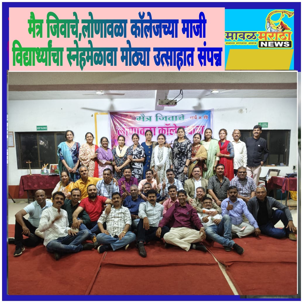 मावळ मराठा न्युज -लोणावळा,लोणावळा कॉलेजमध्ये, शनिवार दि. २८ डिसेंबर २०२४ रोजी सन १९८८ ते १९९३ या वर्षातील माजी विद्यार्थी स्नेहमेळावा माजी विद्यार्थी संघाने आयोजित केला होता. स्नेहमेळाव्यास १०० हून अधिक माजी विद्यार्थी उपस्थित होते.५० ते ६० या वयोगटातील, शारीरिक आकारमान बदललेले सर्व विद्यार्थी मेळाव्यात एकमेकांना भेटून हरखून गेले होते.वर्गमित्र भेटल्याचा आनंद सर्वांच्याच चेहऱ्यावर दिसत होता.सायं.४ वा शाळेत माजी विद्यार्थी एकत्र आल्यावर सर्वांनी नाश्ता व चहाचा आस्वाद घेताना कॉलेजमधील मस्ती, कॅन्टीनमधील धमाल गोष्टी, केलेला अभ्यास, कॉलेज मधील क्रीडास्पर्धा, स्नेहसंमेलने ,NSS शिबीरे आणि सांस्कृतिक कार्यक्रमांची धूम या विविध विषयांवर माजी विद्यार्थ्यांनी जुन्या आठवणींना उजाळा दिला.कार्यक्रमाची सुरुवात कॉलेजचे विश्वस्त श्री.दत्ता भाऊ येवले तसेच कॉलेजचे प्राचार्य श्री.नरेंद देशमुख यांच्या शुभहस्ते सरस्वतीपूजन व दिपप्रज्वलनाने करण्यात आली. कार्यक्रमाचे प्रास्ताविक माजी विद्यार्थीनी मालती पैलकर यांनी प्रास्ताविक सादर केल्यानंतर दिवंगत माजी शिक्षक व माजी विद्यार्थ्यांना श्रद्धांजली वाहण्यात आली.विद्यार्थी मनोगतामध्ये लोणावळा कॉलेजमधील जुन्या सुवर्ण क्षणांना उजाळा देण्यात आला. आजचा दिवस आमच्यासाठी खास आहे. अविस्मरणीय आहे. असे विचार व्यक्त केले उद्घाटन कार्यक्रमानंतर विद्यालयातील माजी विद्यार्थी सुनिल कोपरकर व प्रवीण शिंदे व त्यांच्या सहकाऱ्यांनी सुरेल मंत्रमुग्ध गायन करून मेळाव्याचा माहोल तयार केला.शेवटच्या सत्रात सर्व उपस्थित माजी विद्यार्थ्यांसाठी फॅन्सी गेम्स मुख्याध्यापक श्री.बलकवडे सर यांनी घेतले. या खेळात उपस्थित सर्व माजी विद्यार्थ्यानी आपले वयोमान, पद, प्रतिष्ठा इत्यादी विसरून खेळाचा मनसोक्त आनंद लुटला.या खेळात अनुक्रमे निशा नाईक , महेश पवार, व राजेश परदेशी हे या खेळाचे अंतिम विजेते ठरले. योगाचार्य श्री. अरुण येवले यांनी सर्व उपस्थितांसाठी लाफ्टर शो घेतला. व वातावरण हास्यमय करून टाकले. सदर मैफलीच्या वेळी सर्वांनी उत्तम स्नेहभोजनाचा आनंद लुटला. तब्बल ५ तास कार्यक्रम नियोजनबद्ध चालला. तोही कुठलेही गालबोट न लागता व तेवढ्याच उत्साहात. यावेळी माजी विद्यार्थी श्री. बाळकृष्ण बलकवडे यांनी संपूर्ण कार्यक्रमाचे उत्कृष्ट सूत्रसंचलन केले. तर गोविंद खंडेलवाल यांनी आभार मानले. हा कार्यक्रम यशस्वी करण्यासाठी माजी विद्यार्थी बॉबी बनकर, मालती पैलकर , बाळकृष्ण बलकवडे, गोविंद खंडेलवाल, दिपक चौधरी, महेंद्र भालेराव, स्मिता मोडक, अन्नपूर्णा देशपांडे, राणी काळे, संगिता तोडकर,प्रकाश रत्नाकर, घननीळ केळकर, रमेश ढोरे, सुनिल कोपरकर
