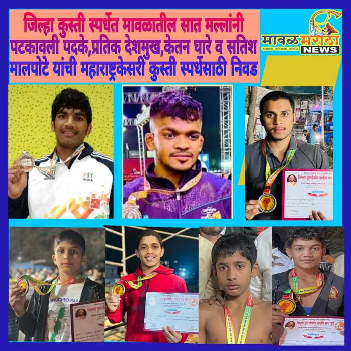 जिल्हा कुस्ती स्पर्धेत मावळातील सात मल्लांनी पटकावली पदके,प्रतिक देशमुख,केतन घारे व सतिश मालपोटे यांची महाराष्ट्रकेसरी कुस्ती स्पर्धेसाठी निवड