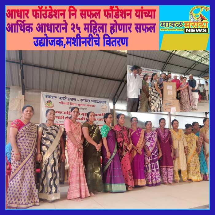 मावळ मराठा न्युज -लोणावळा, शहरातील आणि परिसरातील महिलांना स्वतःच्या पायावर उभ्या करत त्यांना व्यवसायिक बनविण्याचा निर्धार आधार फाउंडेशन व सफल फाउंडेशन यांनी केला आहे. लोणावळ्यातील २५ गरजू महिलांना गृह उपयोगी वस्तू बनविण्याच्या मशीन सदर झालेल्या कार्यक्रमात वाटप करण्यात आल्या. त्या महिलांना सदर मशीनवर वस्तू बनविण्याचे प्रशिक्षण आधार फाउंडेशन च्या माध्यमातून देण्यात येणार आहे. तसेच त्यांनी तयार केलेल्या वस्तूंना बाजारपेठ देखील मिळवूनदेण्याचे काम आधार फाउंडेशन करणार आहे.लोणावळ्यातील शेडगे हाईट्स येथील दत्त मंदिरासमोर हा मशीन वाटपाचा कार्यक्रम ग्रोथ विद्यापीठाचे संस्थापक लतेश शहा, सफल फाउंडेशन च्या श्रीमती नीता सुभाष गंगवार, अनुज गंगवार, आधार फाउंडेशनचे संस्थापक प्रकाश पाठारे, ऍड . चेतन पंड्या, रिट्रेट हॉस्पिटीलिटी चे सुनील गुप्ता, सामाजिक कार्यकर्ते सनी दळवी, पंकज काडे, मधु माधवन,भाऊ जाधव, अन्वर शेख,रेश्मा शेख,कांचन लुनावत,अपर्णा शेडगे, नामदेव डफळ,मनीषा भांगरे,भगवान घनवट, दत्तात्रय लाड यांच्यासह आधार फाउंडेशन आणि जेष्ठ नागरिक संघाच्या उपाध्यक्षा मृदुला पाटील,संध्या गव्हले तसेच सर्व सदस्य मोठ्या संख्येने उपस्थित होते. या कार्यक्रमाचे सूत्रसंचालन पांडुरंग तिखे व रश्मी शिरसकर यांनी केले. प्रकाश पाठारे यांनी उपस्थित मान्यवर यांचे आभार मानले. लोणावळा आणि परिसरातील महिलांयाविषयी बोलताना आधार फाउंडेशन चे संस्थापक अध्यक्ष प्रकाश पाठारे यांनी लोणावळा शहराला उद्योजकांचे शहर बनवण्याचा आमचा मानस आहे. तळागाळातील व वंचित घटकातील महिलांना स्वावलंबी बनवण्यासाठी त्यांच्या हाताला हक्काचे काम देण्यासाठी आम्ही हा उपक्रम सुरू केला आहे. उपक्रमाची सुरुवात करताना लोणावळा शहरातील विविध भागातील २५ महिलांना गृह उपयोगी वस्तू बनवण्याच्या मशीन्स देण्यात आले आहेत पुढील काळामध्ये विविध प्रकारच्या वस्तू बनवण्याच्या मशीन इतर महिलांना देखील देण्यात येणार आहेत. सफल फाउंडेशन व आधार फाउंडेशन यांनी एकत्र येऊन हा उपक्रम हाती घेतला आहे. ज्या महिलांना मशीन देण्यात आले आहेत त्यांना वस्तू बनवण्याचे प्रशिक्षण दिले जाणार आहे. महिलांना स्वावलंबी व स्वयंपूर्ण बनवण्यासाठी आधार फाउंडेशन व्यवसायाच्या रूपाने महिलांना मदत करणार आहे. लोणावळ्यातील महिलांना कार वॉश लिक्वीड बनविण्याचे मशीन, डिश वॉश लिक्वीड, टॉयलेट क्लिनर लिक्वीड, फ्लोअर क्लिनर लिक्वीड, बाथरूम क्लिनर लिक्वीड, गोधडी व रजई बनविणे मशीन, बॉबी व्हील, पॉप कॉर्न मशीन, स्क्रबर घासणी, टूथ ब्रश बनविणे, झाडू बनविणे, वायफर बनविणे आदी वस्तू बनविण्याच्या मशीन मोफत देण्यात आल्या