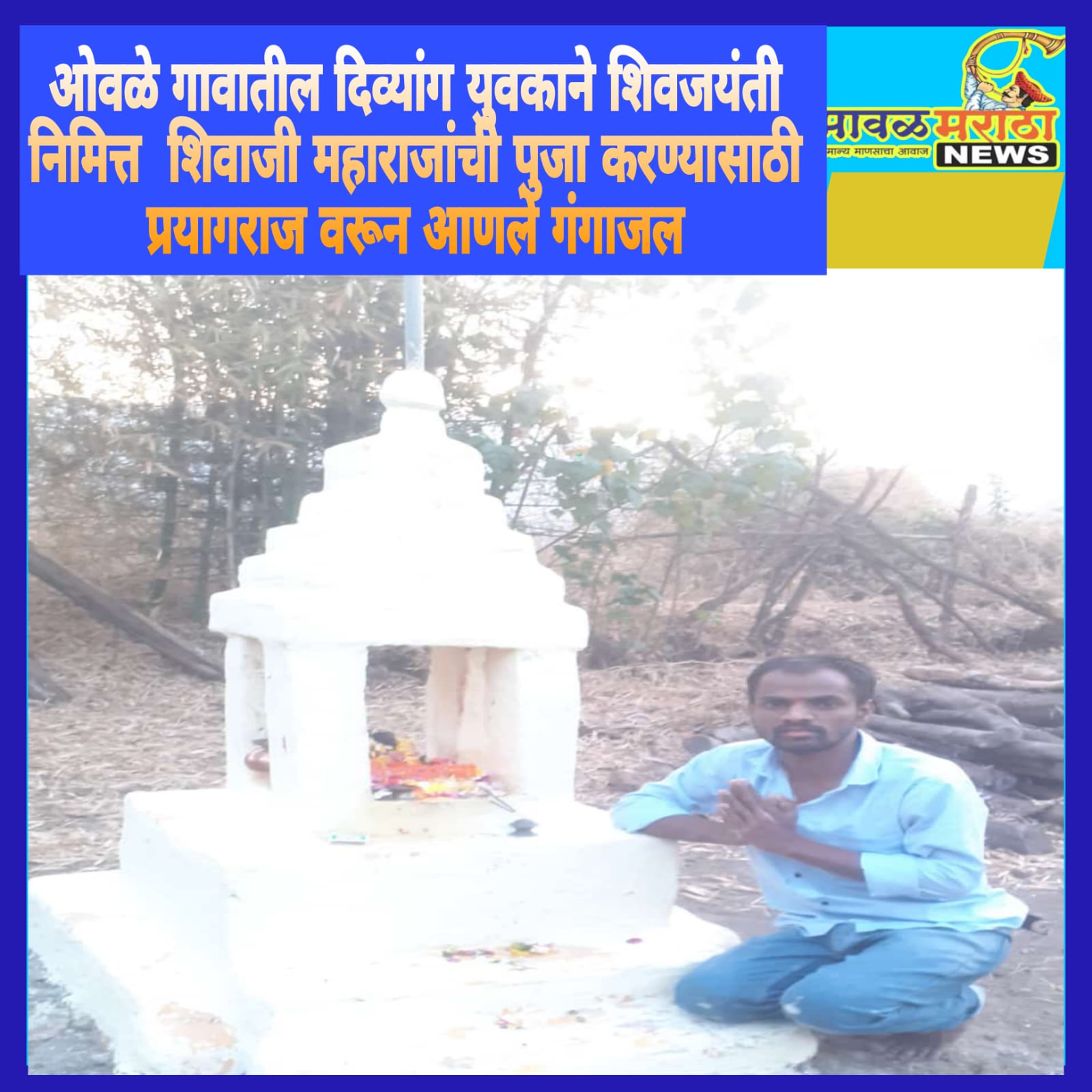 ओवळे गावातील दिव्यांग युवकाने शिवजयंती निमित्त शिवाजी महाराजांची पुजा करण्यासाठी प्रयागराज वरून आणले गंगाजल