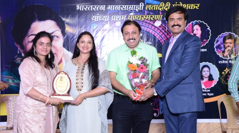 मेहता म्युसिकल्स,लोणावळा तर्फे प्रसिद्ध गायिका मनीषा निश्चल यांना व्हॉइस ऑफ लता पुरस्कार प्रदान