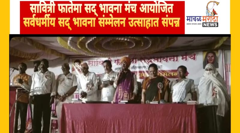 मावळ मराठा न्युज नेटवर्क -सावित्री फातेमा सद् भावना मंच आयोजित सर्वधर्मीय सद् भावना संम्मेलनाचे नुकतेच आयोजन करण्यात आले. यावेळी भारतीय जनसंसद चे महाराष्ट्र प्रदेश अध्यक्ष अशोक सब्बन,नांदेडचे निवृत्त कृषी अधिक्षक भाऊसाहेब ब~हाटे ,भारतीय जनसंसद चे जिल्हा अध्यक्ष ॲड. संभाजी बोरूडे, राष्ट्रसंत तुकडोजी महाराजाचे शिष्य सप्त खंजीरीवादक अमरावतीचे ह.भ.प.सत्यपाल महाराज, मुकुंद सोनटक्के, राष्ट्रिय किर्तनकार ह.भ.प. धर्मक्रांती महाराज सावंत,परभणी,काॅ.स्मिता पानसरे, सत्यशोधक समाज राज्य उपाध्यक्ष नवले, शागुफ्ता मोमोन,मौलाना प्रा.समी साहेब जळगाव,डाॅ. रफीक सय्यद पारनेर आदी मान्यवर उपस्थित होते.