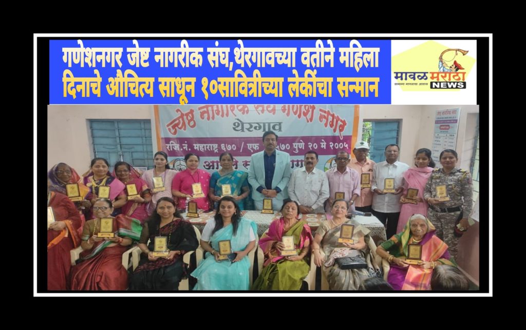 गणेशनगर जेष्ट नागरीक संघ,थेरगावच्या वतीने महिला दिनाचे औचित्य साधून १०सावित्रीच्या लेकींचा सन्मान