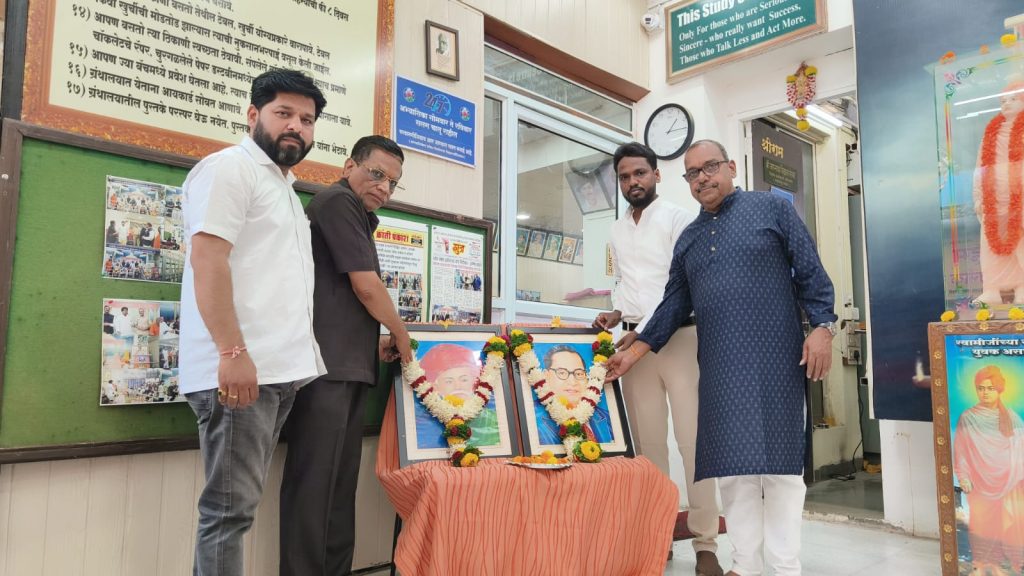 मावळ मराठा न्युज -पिंपरी (प्रदीप गांधलीकर) दिनांक : १६ एप्रिल २०२५) सोहम् सार्वजनिक ग्रंथालय आणि अभ्यासिका या संस्थेच्या वतीने क्रांतिसूर्य महात्मा जोतिबा फुले आणि महामानव डॉ. बाबासाहेब आंबेडकर यांना जयंतीनिमित्त संत तुकारामनगर, पिंपरी येथे मंगळवार, दिनांक १५ एप्रिल २०२५ रोजी अभिवादन करण्यात आले. संत तुकाराम प्रतिष्ठानचे अध्यक्ष नंदू कदम, प्रशासकीय अधिकारी हर्षद कावरे, सोहम् सार्वजनिक ग्रंथालयाचे संस्थापक – अध्यक्ष जगन्नाथ नेरकर, सचिव प्रदीप बोरसे यांची प्रमुख उपस्थिती होती. याप्रसंगी डॉ. बाबासाहेब आंबेडकर आणि महात्मा ज्योतिबा फुले यांच्या प्रतिमेला हार अर्पण करून कार्यक्रमाचा प्रारंभ करण्यात आला. सोहम् सार्वजनिक ग्रंथालयाच्या अभ्यासिकेतून अभ्यास करून प्रशासकीय सेवेत लँड सर्वेअर म्हणून निवडले गेलेले हर्षद कावरे यांनी, ‘डॉक्टर बाबासाहेब आंबेडकर केवळ समाजसुधारक नव्हते; तर त्यांनी आर्थिक विषमतेवरही भाष्य केले. आर्थिक समानता हीच खऱ्या सामाजिक बदलाची गुरुकिल्ली आहे, असे त्यांचे मत होते!’ असे विचार मांडले. नंदू कदम यांनी अध्यक्षीय मनोगतातून, ‘बाबासाहेब आंबेडकरांनी आयुष्यभर दलित, मागास, शोषित व पीडित वर्गांना न्याय मिळवून देण्यासाठी आणि त्यांना प्रवाहात सामावून घेण्यासाठी संघर्ष केला. आजच्या काळातही त्यांचे विचार मोलाचे ठरतात!’ असे मत व्यक्त केले. जगन्नाथ नेरकर यांनी प्रास्ताविक केले.या प्रसंगी मोठ्या संख्येने स्थानिक नागरिक व स्पर्धा परीक्षांचे विद्यार्थी उपस्थित होते. ग्रंथालयाच्या लिपिक माधुरी नेरकर यांनी कार्यक्रमाचे सुयोग्य नियोजन केले. महेंद्र बाविस्कर यांनी कार्यक्रमाचे सूत्रसंचालन केले. प्रदीप बोरसे यांनी आभार मानले.