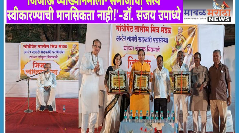 मावळ मराठा न्युज -पिंपरी (प्रदीप गांधलीकर)दिनांक : २८ एप्रिल २०२५ ‘समाजाची सत्य स्वीकारण्याची मानसिकता नाही!’ असे प्रतिपादन ज्येष्ठ प्रवचनकार डॉ. संजय उपाध्ये यांनी चापेकर स्मारक उद्यान, चापेकर चौक, चिंचवडगाव येथे रविवार, दिनांक २७ एप्रिल २०२५ रोजी केले. गांधीपेठ तालीम मित्रमंडळ आणि अनंत नागरी सहकारी पतसंस्था यांच्या संयुक्त विद्यमाने आयोजित पाच दिवसीय जिजाऊ व्याख्यानमालेत ‘सत्य, असत्य आणि समाजशांती’ या विषयावरील अंतिम पुष्प गुंफताना डॉ. संजय उपाध्ये बोलत होते. विधानसभा उपाध्यक्ष अण्णा बनसोडे, गांधीपेठ तालीम मित्रमंडळ अध्यक्ष राजाभाऊ गोलांडे यांची व्यासपीठावर प्रमुख उपस्थिती होती.डॉ. संजय उपाध्ये पुढे म्हणाले की, ‘सत्य, असत्य हे दोन शब्द महाभारतापासून चर्चेत आहेत; आणि आजतागायत ही परंपरा चालू आहे. वास्तविक सत्य, असत्य याचा पडताळा करणे ही व्यक्तिगत बाब आहे. पहलगाम याबाबत जो राजकीय गोंधळ घातला जात आहे, त्यावरून सत्य किंवा असत्य हे सोयीनुसार ठरवले जाते; परंतु त्यामुळे सामाजिक शांती ढवळली जाते. खरे म्हणजे या परिस्थितीत संपूर्ण भारत एक देश म्हणून प्रतिक्रिया अपेक्षित आहे. व्हॉट्सॲपसारख्या समाजमाध्यमातून स्वैराचारी प्रतिक्रिया प्रसूत केल्या जात आहेत. व्यवहारातही सत्य – असत्याचा विवेक न बाळगता माणसे व्यवहार करतात. असत्य काळोख तर सत्य उजेड असूनही दुर्दैवाने सत्याला पुराव्याची गरज भासते. असत्याला राजकीय मुत्सद्देगिरीचे कवच लाभते. अध्यात्मदेखील असत्याला रोखण्याचा प्रयत्न करीत नाही. असे असलेतरी समाजात सत्य रुजवावेच लागेल!’ भगवद्गीता, ज्ञानेश्वर, तुकोबा, कुसुमाग्रज यांचे संदर्भ तसेच विनोद, कविता उद्धृत करीत उपाध्ये यांनी सद्यःस्थितीवर मार्मिक भाष्य केले.व्याख्यानापूर्वी, गांधीपेठ तालीम मित्रमंडळाच्या वतीने नेत्ररोगतज्ज्ञ डॉ. रोहिणी नाईक (जिजाऊ पुरस्कार), धनेश्वर मंदिर ट्रस्टचे विश्वस्त कैलास साठे (चिंतामणी पुरस्कार) आणि सुप्रसिद्ध निवेदक सुधीर गाडगीळ (क्रांतिवीर चापेकर पुरस्कार) यांना गौरविण्यात आले. पुरस्कारार्थींना सन्मानित केले जात असताना महिलापथकाने सामुदायिक शंखनाद करीत मानवंदना दिली. पुरस्कारार्थींच्या वतीने सुधीर गाडगीळ यांनी श्रोत्यांच्या प्रश्नांना उत्स्फूर्त अन् खुसखुशीत उत्तरे देताना पंडित भीमसेन जोशी, दादा कोंडके, लता मंगेशकर, आशा भोसले आणि बाळासाहेब ठाकरे यांच्या मार्मिक आठवणींना उजाळा दिला. महेश गावडे यांनी प्रास्ताविक केले. अध्यक्षीय मनोगतातून अण्णा बनसोडे यांनी, ‘गांधीपेठ तालीम मित्रमंडळाच्या संपूर्ण वाटचालीचा मी साक्षीदार आहे. त्यांच्या तालिमेतून मल्ल तयार झाले; तसेच कार्यकर्तेही घडले!’ असे गौरवोद