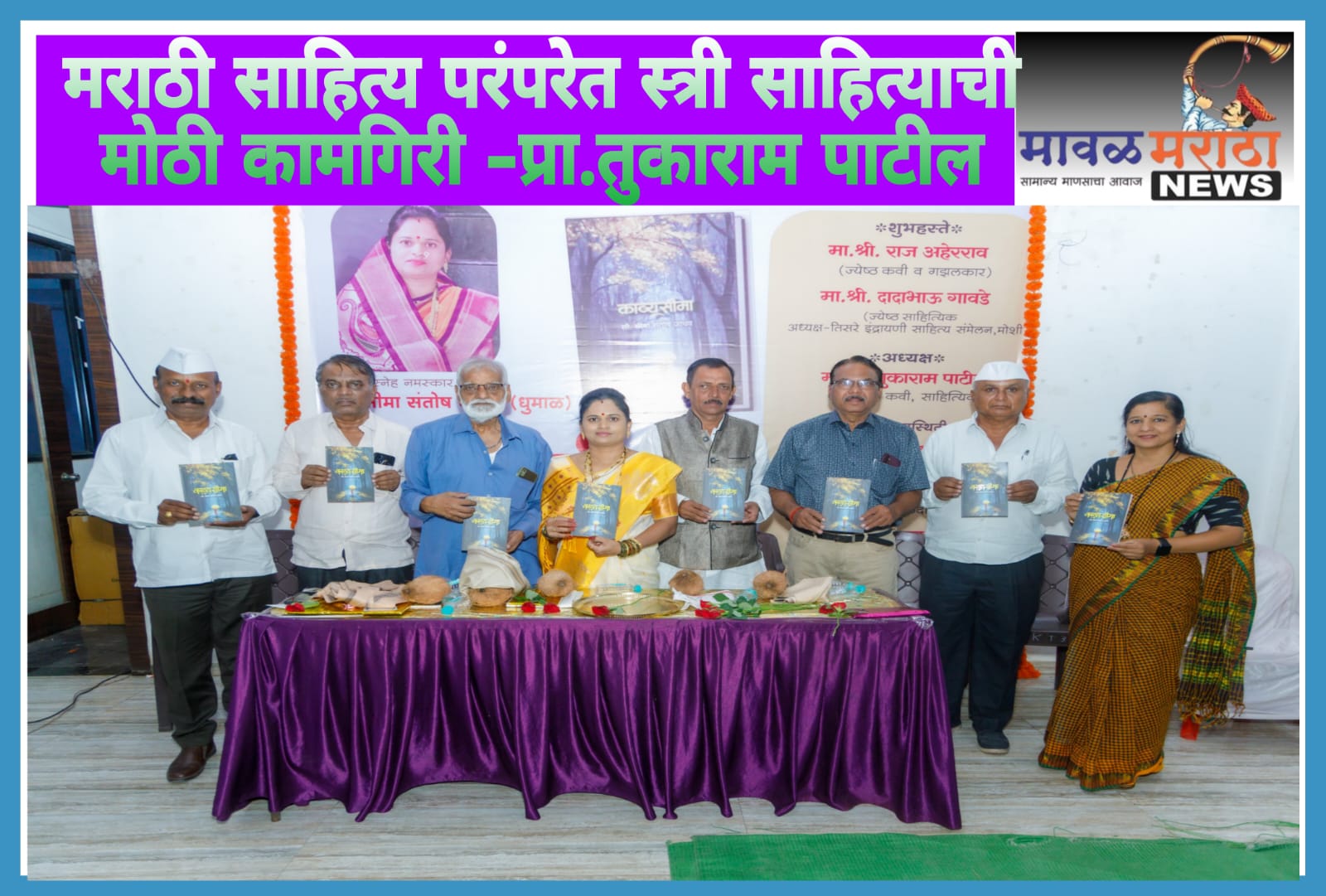 मावळ मराठा न्युज -पिंपरी,(प्रदीप गांधलीकर)दिनांक : २८ एप्रिल २०२५ ‘मराठी मायबोलीच्या साहित्य परंपरेत स्त्री साहित्याची कामगिरी मोठी आहे. पारंपरिक लोकसाहित्यातही स्त्री साहित्य अग्रेसर आहे. संस्कारक्षम साहित्य निर्माण करून महाराष्ट्राची तरुणपिढी सुसंस्कारित, धाडशी आणि कर्तृत्ववान करण्यात स्त्रियांनीच मोलाची कामगिरी केली आहे. हा वारसा पुढे नेण्यासाठी स्त्रीशक्तीने सातत्याने प्रयत्न करायला हवेत. तोच प्रयत्न सीमा संतोष जाधव करीत आहेत!’ असे उद्गार ज्येष्ठ साहित्यिक प्रा. तुकाराम पाटील यांनी मोशी येथे बोलताना काढले. सीमा संतोष जाधव यांच्या ‘काव्यसीमा’ या कवितासंग्रहाच्या प्रकाशन प्रसंगी अध्यक्षस्थानावरून तुकाराम पाटील बोलत होते. इंद्रायणी साहित्य परिषद आयोजित या प्रकाशन समारंभात प्रमुख पाहुणे म्हणून ज्येष्ठ गझलकार राज अहेरराव, ग्रामीण साहित्यिक दादाभाऊ गावडे, लोकसाहित्याचे अभ्यासक सोपान खुडे, इतिहास संशोधक ब. हि. चिंचवडे, विनायक गुहे, वंदना आल्हाट, राम सासवडे, गणेश सस्ते, संतोष जाधव इत्यादी उपस्थित होते.यावेळी बोलताना अहेरराव म्हणाले, ‘कविता लिहिण्यासाठी आत्मबळ आवश्यक आहे. साहित्य क्षेत्रात नवकवी किंवा ज्येष्ठकवी ही संकल्पना चुकीची वाटते. वास्तविक कुठलाही कवी काव्य निर्माण करत नसतो, तर एक अज्ञात शक्ती त्यास काव्यप्रेरणा देत असते. जो काव्य रचतो तो व्यास, जो काव्य ऐकतो तो अर्जुन, जो काव्याचा भावार्थ विषद करतो तो ज्ञानेश्वर, जो काव्याची उकल करून समाजाला अर्पण करतो तो तुकाराम, जो काव्य जगतो तो भक्त पुंडलिक आणि जे काव्यावर प्रेम करतात ते वारकरी जे इथे आलेले सर्व रसिक आहेत.’ ग्रामीण साहित्यिक दादाभाऊ गावडे यांनी, ‘सीमा जाधव यांच्या काव्यप्रतिभेतून बहिणाबाई चौधरी डोकावत असल्याचे सांगितले. वाचनाने, सरावाने कविता प्रगल्भ होते. साहित्यलेखन ही एक तपश्चर्या आहे. बोलत राहिले की पायाखालची वाट लवकर संपते; परंतु लिहित राहिले की वाटसुद्धा बोलू लागते. सीमा जाधव यांच्या कविता अतिशय आशयसंपन्न आहेत.’ असे मत मांडले. याप्रसंगी सोपान खुडे, ब. हि. चिंचवडे, सीमा जाधव यांनीही मनोगत व्यक्त केले. यावेळी डॉ. सोनाली चिंतामणी, प्रा. जयश्री थोरवे, तेजस्विनी जाधव, रसिका सस्ते इत्यादी कर्तबगार महिलांचा सन्मान करण्यात आला. इंद्रायणी साहित्य परिषदेचे संस्थापक अरुण बोऱ्हाडे यांनी प्रास्ताविक केले. मनोज तांबे यांनी सूत्रसंचालन केले. रूपाली काळे, शीतल सस्ते, सुनील जाधव, इत्यादींनी कार्यक्रमाचे संयोजन केले.