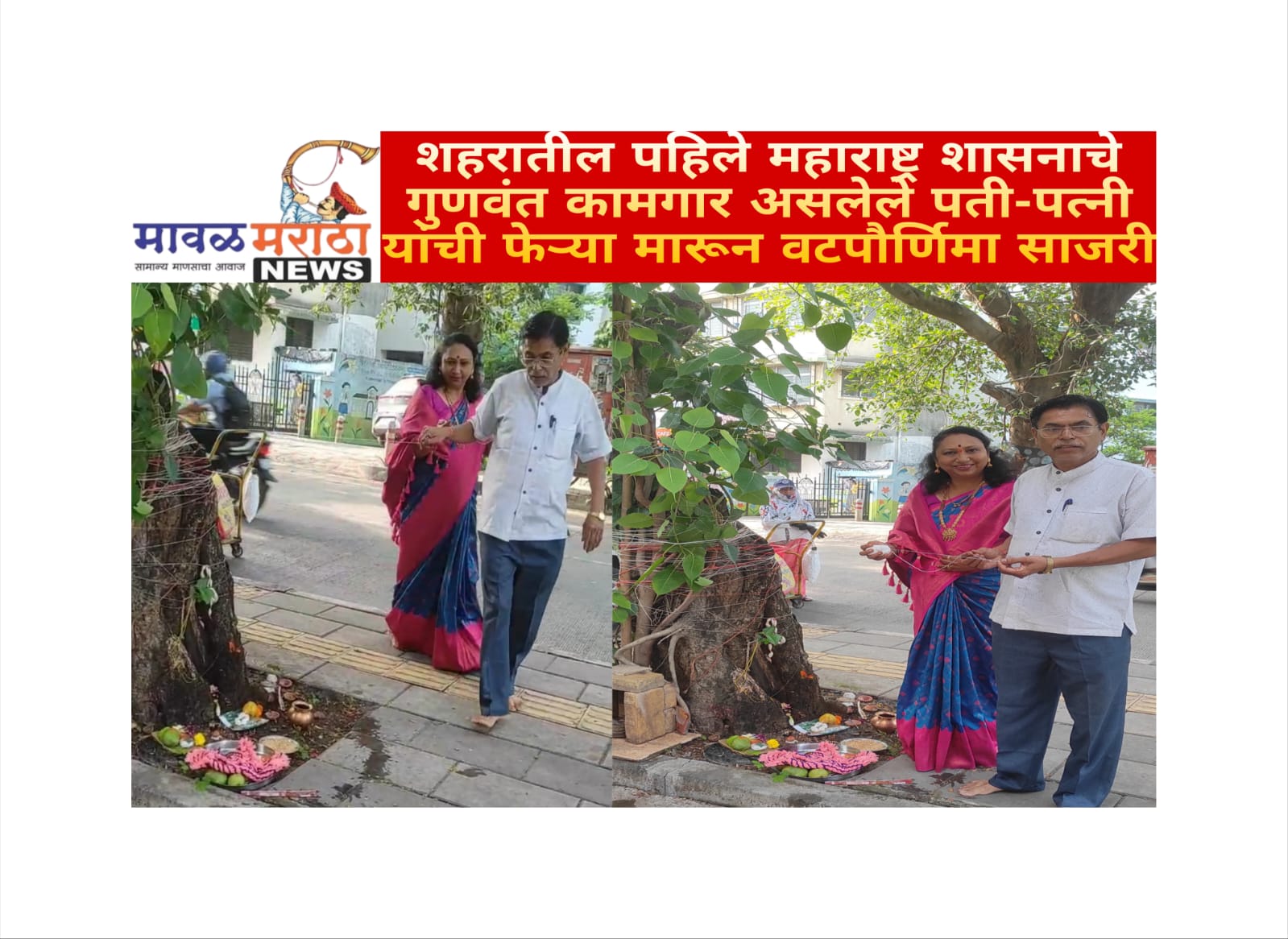शहरातील पहिले महाराष्ट्र शासनाचे गुणवंत कामगार असलेले पती-पत्नी यांची फेऱ्या मारून वटपौर्णिमा साजरी