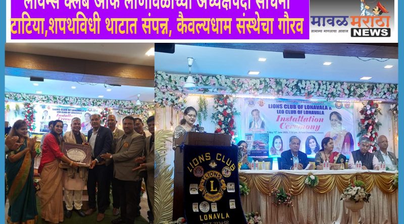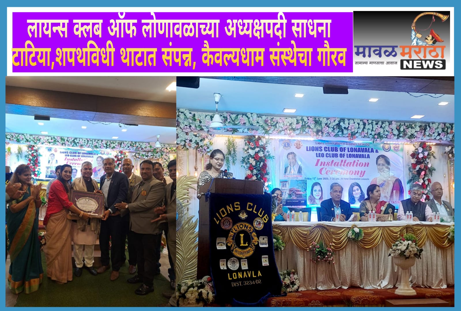 लायन्स क्लब ऑफ लोणावळाच्या अध्यक्षपदी साधना टाटिया,शपथविधी थाटात संपन्न, कैवल्यधाम संस्थेचा गौरव