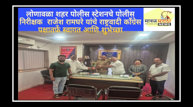 लोणावळा शहर पोलीस स्टेशनचे पोलीस निरीक्षक राजेश रामघरे यांचे राष्ट्रवादी काँग्रेस पक्षातर्फे स्वागत आणि शुभेच्छा
