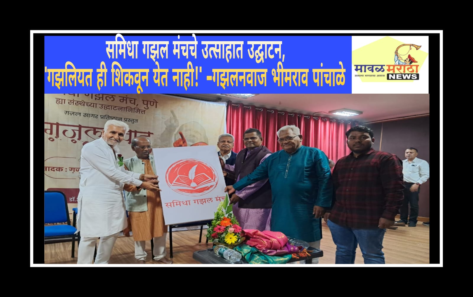 मावळ मराठा न्युज -पिंपरी,(प्रदीप गांधलीकर) दिनांक : २९ जून २०२५’गझललेखनाचे तंत्र शिकता येते; पण गझलियत ही शिकवून येत नाही!’ असे विचार गझलनवाज भीमराव पांचाळे यांनी सायन्स पार्क सभागृह, चिंचवड येथे शनिवार, दिनांक २८ जून २०२५ रोजी समिधा गझल मंच, पुणे या संस्थेचे उद्घाटन करताना व्यक्त केले. ज्येष्ठ गझलकार प्राचार्य सतीश देवपूरकर, म. भा. चव्हाण, गझल समीक्षक डाॅ. अविनाश सांगोलेकर आणि समिधा गझल मंच, पुणेचे संस्थापक – अध्यक्ष डाॅ. प्रशांत पाटोळे यांची व्यासपीठावर प्रमुख उपस्थिती होती. दीपप्रज्वलन आणि गझलसम्राट सुरेश भट यांच्या प्रतिमेचे पूजन करून कार्यक्रमाचा प्रारंभ करण्यात आला.डाॅ. प्रशांत पाटोळे यांनी प्रास्ताविकातून, ‘गझल लिहिणारे विपुल कवी असूनही गझललेखनाच्या मंत्रासोबतच गझलियत शिकवणाऱ्या संस्थांची वानवा आहे. त्यामुळे कवी आणि श्रोते यांच्यातील दरी वाढत चालली आहे. संगीतासह अन्य कलांचे अभिजात अन् भव्य कार्यक्रम साजरे होतात. या पार्श्वभूमीवर मराठी गझलेच्या समृद्धीसाठी मान्यवरांचे आशीर्वाद सोबत घेऊन गझल मंचाची स्थापना केली!’ अशी भूमिका मांडली. म. भा. चव्हाण यांनी, ”हे फूल राहावे ताजे, एवढेच मनोगत माझे!’ अशा काव्यात्मक शुभेच्छा दिल्या. डाॅ. अविनाश सांगोलेकर यांनी, ‘मराठी गझल क्षेत्रातील मळभ दूर व्हावे म्हणून समिधा गझल मंचाचे आज रोपटे लावण्यात आले असले तरी अल्पावधीतच या रोपाचे वटवृक्षात रूपांतर होईल!’ असा विश्वास व्यक्त केला. प्राचार्य सतीश देवपूरकर यांनी, ‘गझल ही नि:शब्दाची भाषा असून अजूनही मराठी गझलेला जाणकार श्रोता लाभलेला नाही. त्यामुळे गझललेखनात शिस्त पाळून प्रत्येक द्विपदी दर्जेदार व्हावी!’ अशी अपेक्षा व्यक्त केली.कार्यक्रमाच्या उत्तरार्धात डाॅ. अविनाश सांगोलेकर यांनी ‘गझलसंवाद’ या सत्रांतर्गत गझलनवाज भीमराव पांचाळे यांच्याशी सुसंवाद साधून त्यांच्या गझलगायकीची सुमारे पन्नास वर्षांची सुवर्णमहोत्सवी वाटचाल श्रोत्यांसमोर उलगडून सांगितली. त्यामध्ये पांचाळे यांनी १९७२ मध्ये गझलगायनाचा केलेला प्रारंभ, सुरेश भट यांच्या गझलेने आयुष्याला दिलेली सुरेल कलाटणी, त्यांच्यासोबत संपन्न झालेल्या गझलमैफली, ‘गझलनवाज’ ही सुरेश भटांनी बहाल केलेली उपाधी, १९९७ मध्ये आईना – ए – गझल या संस्थेची स्थापना अन् कालांतराने त्याचे गझलसागर प्रतिष्ठानमध्ये झालेले रूपांतर, दहा अखिल भारतीय मराठी गझल संमेलनांचे आयोजन अशा विविध घटनांचा ऊहापोह करीत, ‘गझलेने मला बोटाला धरून आयुष्यात फिरवून आणले. सातासमुद्रापार २२ देशांमध्ये गझलगायनासाठी नेले. महाराष्ट्र शासनाने लता मंगेशकर हा शासकीय सन्मान प्रदान करून गौरविले!’ अशा शब्दांतून कृतज्ञता व्यक्त करून नवीन 