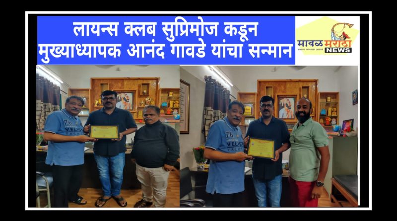 लायन्स क्लब सुप्रिमोज कडून मुख्याध्यापक आनंद गावडे यांचा सन्मान