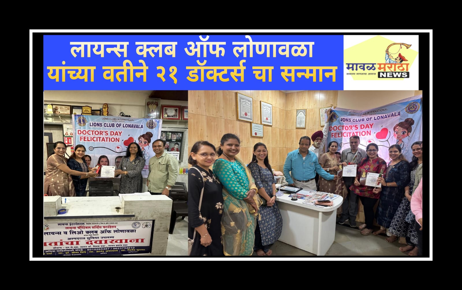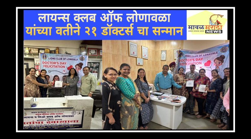लायन्स क्लब ऑफ लोणावळा यांच्या वतीने २१ डॉक्टर्स चा सन्मान