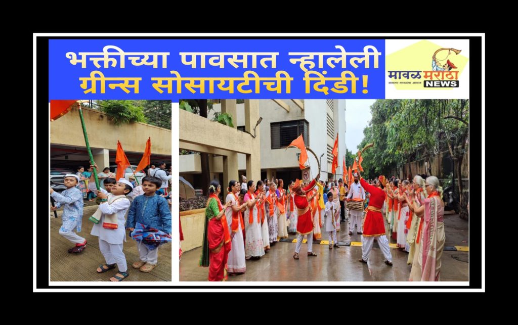 मावळ मराठा न्युज -पिंपरी, (प्रदीप गांधलीकर) दिनांक : ०६ जुलै २०२५ थेरगाव, चिंचवड येथील ग्रीन्स सोसायटीत आषाढी एकादशीचा उत्सव मोठ्या भक्तिभावात आणि उत्साहात रविवार, दिनांक ०६ जुलै २०२५ रोजी साजरा झाला. पारंपरिक टाळ, मृदंग आणि अभंगगायनाच्या गजरात, संपूर्ण सोसायटीत दिंडी काढण्यात आली.दिंडीच्या तयारीची सुरुवात श्री ज्ञानेश्वर माउलींचा पालखी सोहळा सुरू झाल्या दिवशीपासूनच झाली. त्यानंतर रोज सोसायटीतील ज्येष्ठ महिलांनी हरिनामाचा गजर केला, आणि संपूर्ण परिसर पांडुरंगमय झाला होता.आषाढी एकादशीच्या दिवशी सकाळी प्रथम विठ्ठल-रुक्मिणी पूजन आणि त्यानंतर पालखी पूजन, पिंपरी – चिंचवड महानगरपालिकेच्या माजी महापौर झामाबाई बारणे यांच्या हस्ते करण्यात आले. अनिल बारणे यांनीही उपस्थित राहून सोहळ्याची शोभा वाढवली.दिंडीत लहानग्यांनी विठ्ठल-रखुमाईच्या वेशात सादर केलेल्या गोड नृत्याने सर्वांची मने जिंकली. महिलांनी टाळांच्या गजरात भजने सादर केली, ज्याला मृदंग आणि शृंगवाद्यांची साथ लाभली. वारकरी पोशाखात सज्ज झालेले आजी-आजोबा, रंगीबेरंगी पताका, पाऊस पडत असतानाही परिसरात फिरणारी दिंडी, आणि ‘ज्ञानोबा माउली तुकाराम’च्या जयघोषाने संपूर्ण सोसायटी दुमदुमून गेली. एकंदरीत, आषाढी एकादशीचा हा उत्सव भक्ती, प्रेम, एकता आणि संस्कृतीचा मनाला भिडणारा अनुभव ठरला. या सोहळ्यातून मिळालेली सकारात्मक ऊर्जा संपूर्ण वर्षभर साथ देईल, असा विश्वास सर्वांनी व्यक्त केला.