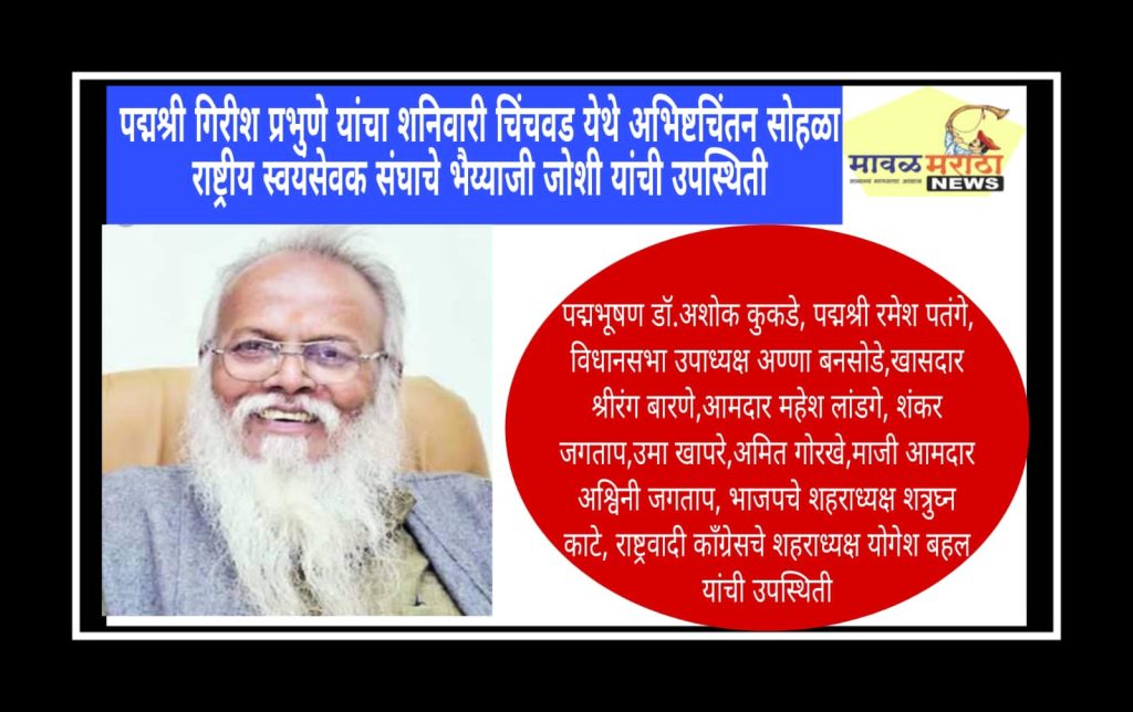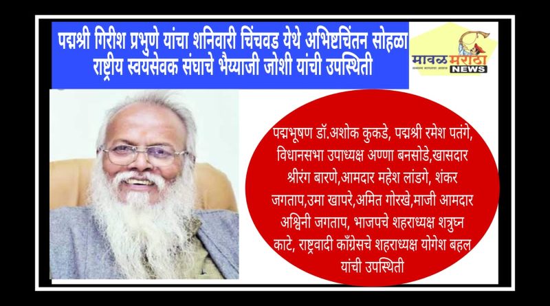 मावळ मराठा न्युज -पिंपरी,ज्येष्ठ सामाजिक कार्यकर्ते, पद्मश्री गिरीश प्रभुणे यांच्या अमृतमहोत्सवी वाढदिवसानिमित्त येत्या शनिवारी (१२)अभिष्टचिंतन सोहळ्याचे आयोजन करण्यात आले आहे. यासाठी राष्ट्रीय स्वयंसेवक संघाचे अखिल भारतीय कार्यकारिणी सदस्य भैय्याजी जोशी उपस्थित राहणार आहेत. याबाबतची माहिती डॉ.सुनिल भंडगे, ॲड सतिश गोरडे,रवी नामदे यांनी दिली.चिंचवड येथील प्रा.रामकृष्ण मोरे प्रेक्षागृहात शनिवारी सकाळी साडे दहा वाजता हा कार्यक्रम होणार आहे. या सोहळ्याला पद्मभूषण डॉ.अशोक कुकडे, पद्मश्री रमेश पतंगे, विधानसभा उपाध्यक्ष अण्णा बनसोडे, खासदार श्रीरंग बारणे, आमदार महेश लांडगे, शंकर जगताप, उमा खापरे, अमित गोरखे, माजी आमदार अश्विनी जगताप, भाजपचे शहराध्यक्ष शत्रुघ्न काटे, राष्ट्रवादी काँग्रेसचे शहराध्यक्ष योगेश बहल उपस्थित राहणार आहेत.गेल्या अनेक वर्षांपासून गिरीश प्रभुणे पिंपरी-चिंचवड शहरातील समाजकार्यात कार्यरत आहेत. क्रांतीवीर चापेकर स्मारक समितीचे ते अध्यक्ष आहेत. या अंतर्गत पुनरुत्थान समरसता गुरुकुलम चालविले जाते. या गुरुकुलममध्ये वंचित घटकांतील मुलांना शिक्षण दिले जात आहे. पारधी समाजासाठी ते काम करीत आहेत. या समाजातील विद्यार्थ्यांना मुख्य प्रवाहात आणण्यासाठी झटत आहेत. अशा प्रभुणे यांचा शनिवारी अमृतमहोत्सवी वाढदिवस आहे. या सोहळ्याला शहरातील नागरिकांनी मोठ्या संख्येने उपस्थित रहावे असे आवाहन आयोजकांनी केले आहे.