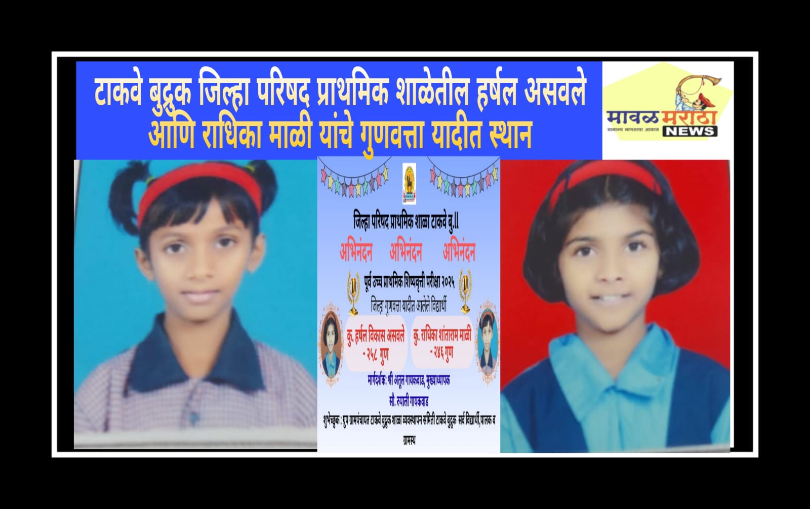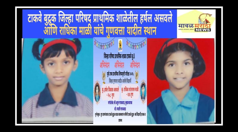 टाकवे बुद्रुक जिल्हा परिषद प्राथमिक शाळेतील हर्षल असवले आणि राधिका माळी यांचे गुणवत्ता यादीत स्थान