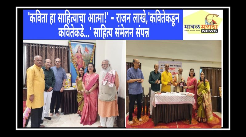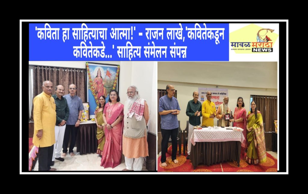 मावळ मराठा न्युज -पिंपरी (प्रदीप गांधलीकर)दिनांक २१ जुलै २०२५’कविता हा साहित्याचा आत्मा आहे!’ असे विचार महाराष्ट्र साहित्य परिषद, पिंपरी – चिंचवड शाखाध्यक्ष राजन लाखे यांनी दत्तोपंत म्हसकर सार्वजनिक विश्वस्त संस्था सभागृह, पेठ क्रमांक २७, निगडी प्राधिकरण येथे रविवार, दिनांक २० जुलै २०२५ रोजी व्यक्त केले. नांदेड येथे संपन्न होणाऱ्या विसाव्या राज्यस्तरीय समरसता साहित्य संमेलनपूर्व एकदिवसीय ‘कवितेकडून कवितेकडे…’ यासंमेलनात अध्यक्षीय मनोगत व्यक्त करताना राजन लाखे बोलत होते. ज्येष्ठ समाजसुधारक पद्मश्री गिरीश प्रभुणे, विधानपरिषद आमदार उमा खापरे, महाराष्ट्र समरसता साहित्य परिषद कोषाध्यक्ष सुनील ढेंगळे, प्रांत संयोजक प्रा. डॉ. धनंजय भिसे, वन्यजीव अभ्यासक डॉ. सुधीर हसमनीस, समरसता साहित्य परिषद, पिंपरी – चिंचवड शाखाध्यक्ष मानसी चिटणीस यांची व्यासपीठावर प्रमुख उपस्थिती होती; तसेच संमेलनात नीलेश गद्रे, विलास लांडगे, सुरेश जोशी, क्षितिज गायकवाड, राजेंद्र घावटे, राज अहेरराव, सुरेश कंक यांनी उपस्थिती दर्शवली.उमा खापरे यांनी, ‘अहिल्यादेवी होळकर यांनी समाजासाठी आयुष्य समर्पित केले. राजकीय वारसा नसतानाही माझी कारकीर्द घडविण्यात संघ परिवाराचे योगदान आहे!’ अशी भावना व्यक्त केली. सुनील ढेंगळे यांनी, ‘संपूर्ण भारत देश हा साहित्याने जोडलेला आहे!’ असे मत मांडले. याप्रसंगी पुण्यश्लोक अहिल्यादेवी होळकर या विषयावरील जिल्हास्तरीय निबंधस्पर्धेतील विजेत्यांना बक्षीस वितरण करण्यात आले. स्वरा देशमुख या विद्यार्थिनीने सादर केलेल्या ईशस्तवनानंतर आणि पंचमहापुरुषांच्या प्रतिमेचे पूजन करून कार्यक्रमाचा प्रारंभ करण्यात आला. सुहास घुमरे यांनी प्रास्ताविकातून ‘नव्वदोत्तरी कविता’ या विषयावर संमेलन केंद्रित असल्याची माहिती दिली.उद्घाटन सत्रानंतर डाॅ. वैशाली मोहिते यांच्या अध्यक्षतेखाली ‘नव्वदोत्तरी कवितेतील स्थित्यंतरे’ या परिसंवादात अरुण बोऱ्हाडे (नव्वदोत्तरी कामगार कविता), अभिजित काळे (नव्वदोत्तरी गझल), मानसी चिटणीस (नव्वदोत्तरी ग्रामीण कविता) यांनी ऊहापोह केला. डाॅ. वैशाली मोहिते यांनी, ‘समाजाची गती, स्थिती, प्रयोजन जाणण्याचे साधन म्हणजे साहित्य होय!’ असे अध्यक्षीय मत मांडले. त्यानंतर ‘करम बहावा’ या सत्रात चिन्मयी चिटणीस, भालचंद्र कुलकर्णी, डाॅ. मंदार खरे, निरुपमा महाजन, प्राजक्ता वेदपाठक, मिलिंद छत्रे, वैशाली माळी यांनी पिवळ्या रंगाची वेषभूषा परिधान करून वैविध्यपूर्ण आशयविषयांच्या कवितांचे प्रभावी सादरीकरण केले. संमेलनाच्या अंतिम सत्रात प्रा. सुरेखा कटारिया यांच्या अध्यक्षतेखाली तसेच विनायक कुलकर्णी आणि आनंद हरी यांच्या प्रमुख उपस्थितीत स