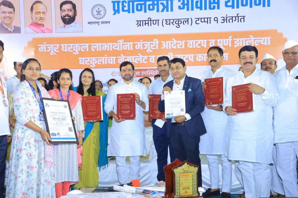 मावळ मराठा न्यूज- वडगाव मावळ, २८ जुलै – प्रधानमंत्री आवास योजनेच्या पहिल्या टप्प्यांतर्गत नव्याने मंजूर घरकुल लाभार्थ्यांना आदेश वाटप, तसेच पूर्ण झालेल्या घरांच्या चाव्या व नेमप्लेट वाटपाचा भव्य सोहळा आज (सोमवारी), वडगाव मावळ येथील भेगडे लॉन्स येथे आमदार सुनील शेळके यांच्या हस्ते अत्यंत उत्साहात आणि मोठ्या थाटात पार पडला.ही योजना म्हणजे केवळ चार भिंतींचं बांधकाम नसून, गरजू कुटुंबांच्या घरस्वप्नांची पूर्ती करणारा आश्वासक उपक्रम असल्याची भावना यावेळी व्यक्त झाली. आपल्या स्वतःच्या घराची चावी हाती घेताच अनेक लाभार्थ्यांच्या चेहऱ्यावर आनंदाचं हास्य व डोळ्यांतून अश्रू ओघळताना दिसून आले. काही लाभार्थ्यांनी आपल्या भावना व्यक्त करत सांगितलं की, “वर्षानुवर्षे घराच्या प्रतीक्षेत होतो, मात्र आज शासनाच्या या योजनांमुळे आमचं आयुष्यच पालटलं आहे.”*’मावळ पॅटर्न’ जिल्ह्यासाठी आदर्श ठरावा – जिल्हाधिकारी डुडी*या कार्यक्रमात उपस्थित जिल्हाधिकारी जितेंद्र डुडी यांनी म्हटले की, *“या योजनेचा आदर्श ‘मावळ पॅटर्न’ आपण मावळात बनवूयात व त्याची अंमलबजावणी संपूर्ण जिल्ह्यात करूयात,”* असे आवाहन त्यांनी उपस्थित प्रशासकीय अधिकारी आणि लोकप्रतिनिधींना केले.*११० नवीन लाभार्थ्यांना आदेश, १२७ कुटुंबांना चाव्यांचे वितरण*या कार्यक्रमात प्रधानमंत्री आवास योजनेच्या दुसऱ्या टप्प्यातील ६६, रमाई आवास योजना अंतर्गत ३४ आणि यशवंत आवास योजना (ठाकर समाज) अंतर्गत १० अशा एकूण ११० नव्या लाभार्थ्यांना घरकुल आदेश देण्यात आले. याशिवाय, आतापर्यंत १२७ लाभार्थ्यांना त्यांच्या पूर्ण झालेल्या घरांच्या चाव्या व नेमप्लेट्स देण्यात आल्या.*गायरान व खाजगी जमिनींवर घरकुलासाठी जागा वाटप*या कार्यक्रमाचा आणखी एक महत्त्वाचा टप्पा म्हणजे जमिनीच्या वाटपाचा होता. मावळ तालुक्यात प्रधानमंत्री जन मन घरकुल योजनेअंतर्गत २५९ आणि प्रधानमंत्री आवास योजनेअंतर्गत १२२ लाभार्थ्यांना गायरान जमिनीवर घरकुल बांधणीसाठी ७/१२ उतारे वाटप करण्यात आले. विशेष बाब म्हणजे कोटमवाडी येथील काही लाभार्थ्यांना वनविभागातून तर शिवली, कुणे नामे व ओव्हळे गावांतील लाभार्थ्यांना खाजगी जमीन मालकांनी सामाजिक जाणिवेतून बक्षीसपत्राद्वारे जागा उपलब्ध करून दिली.कार्यक्रमाच्या यशस्वी आयोजनासाठी स्थानिक ग्रामपंचायती, प्रशासन, पाणीपुरवठा विभाग, ग्रामविकास अधिकारी व घरकुल प्रकल्प विभाग यांनी समन्वय साधून भरीव कामगिरी बजावली. यावेळी जिल्हाधिकारी जितेंद्र दुडी, उपवनसंरक्षक महादेव मोहिते, मावळ-मुळशी उपविभागीय अधिकारी सुरेंद्र नवले, प्रकल्प संचालक शालिनी कडू, तहसिलदार विक्रम देशमुख, गटविकास अधिकारी कुलदीप प्रधान य