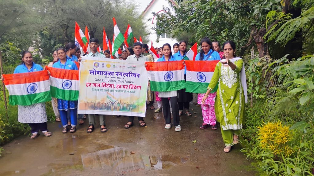 मावळ मराठा न्युज -लोणावळा,शासन आदेशानुसार २ ऑगस्ट ते १५ ऑगस्ट या कालावधीत स्थानिक स्वराज्य संस्थांनी ‘हर घर तिरंगा – हर घर स्वच्छता’ मोहीम राबविण्याचे निर्देश देण्यात आले होते. त्यानुसार लोणावळा नगरपरिषदेतर्फे “हर घर तिरंगा, हर घर स्वच्छता” हा नारा देत स्वच्छता मोहिमेने अभियानाची सुरुवात करण्यात आली.या उपक्रमांतर्गत लोणावळा नगरपरिषद व INS शिवाजी नेव्हल बँड पथक यांच्या संयुक्त विद्यमाने विविध शाळांमध्ये देशभक्तीपर संगीतवाद्य कार्यक्रम आयोजित केले जात असून, विद्यार्थ्यांना देशभक्तीविषयक मार्गदर्शन दिले जात आहे. तसेच नगरपरिषद कार्यक्षेत्रातील महिला बचत गटांना (मीरा बहुउद्देशीय सेवाभावी संस्था) सहकार्य करून भारतीय जवान व पोलिसांसाठी तिरंगा राख्या तयार करण्यात आल्या.अभियानात स्वच्छता कर्मचारी यांच्यासाठी मोफत आरोग्य शिबिराचे आयोजन करण्यात आले. याशिवाय, मुख्याधिकारी मा. अशोक साबळे यांच्या निर्देशानुसार शहरातील सर्व शाळांना त्यांच्या स्तरावर या मोहिमेअंतर्गत उपक्रम राबविण्याचे निर्देश देण्यात आले असून, आवश्यक सहकार्य पुरविले जात आहे.शाळांनी उत्स्फूर्त प्रतिसाद देत चित्रकला स्पर्धा, तिरंगा राखी बनविण्याची कार्यशाळा, रांगोळी स्पर्धा, प्रभातफेरी यांसारखे विविध उपक्रम राबविले आहेत. नगरपरिषदेमार्फत तिरंगा चित्रकला स्पर्धेसाठी आवश्यक साहित्य, तिरंगा राखी बनविण्यासाठी साहित्य, रांगोळी साहित्य तसेच प्रभातफेरीसाठी तिरंगा झेंडे पुरविण्यात येत आहेत.शाळा स्तरावर होणाऱ्या स्पर्धांमधील प्रथम तीन विजेत्यांना (प्रत्येक शाळेनुसार) प्रोत्साहनपर बक्षिसे देण्यात येणार आहेत.लोणावळा नगरपरिषदेचे मुख्याधिकारी मा. अशोक साबळे यांनी शहरातील नागरिकांना आवाहन केले आहे की, या राष्ट्रीय पर्वात सहभागी होऊन आपापल्या घरावर तिरंगा फडकवावा, स्वच्छतेत सक्रिय सहभाग घ्यावा आणि देशभक्तीची भावना वृद्धिंगत करावी.