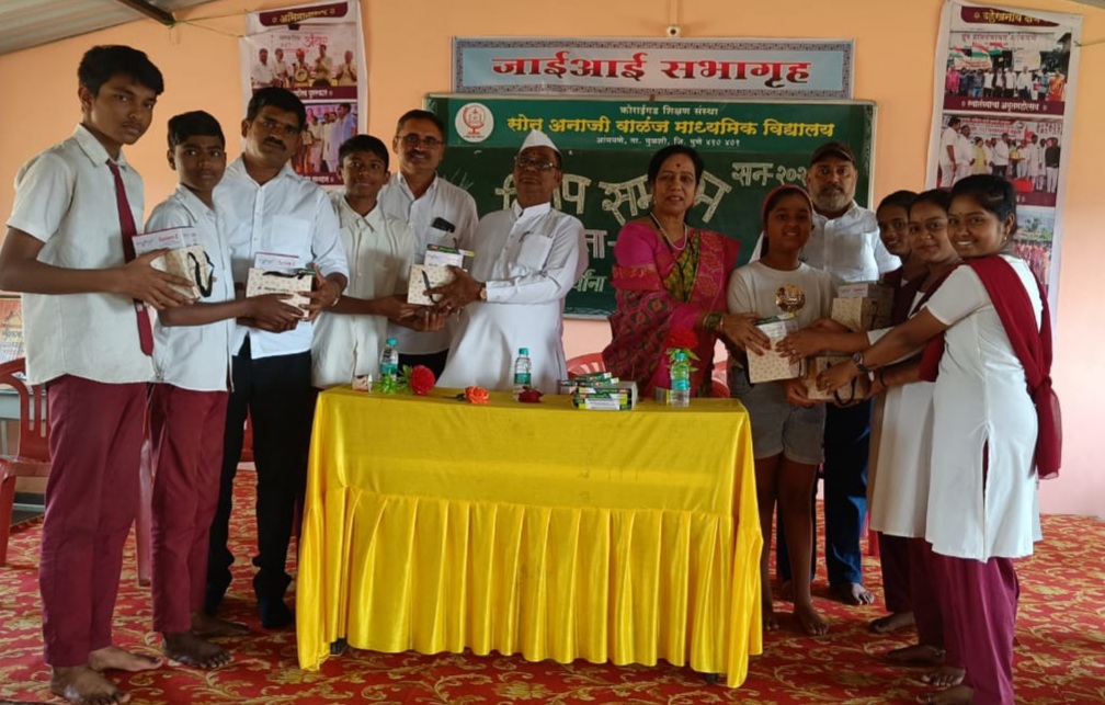 सौ. वाळंज ताई यांच्या वतीने सर्व दहावीतील विद्यार्थ्यांना भेट वस्तू व पेन चे वाटप करण्यात आले.