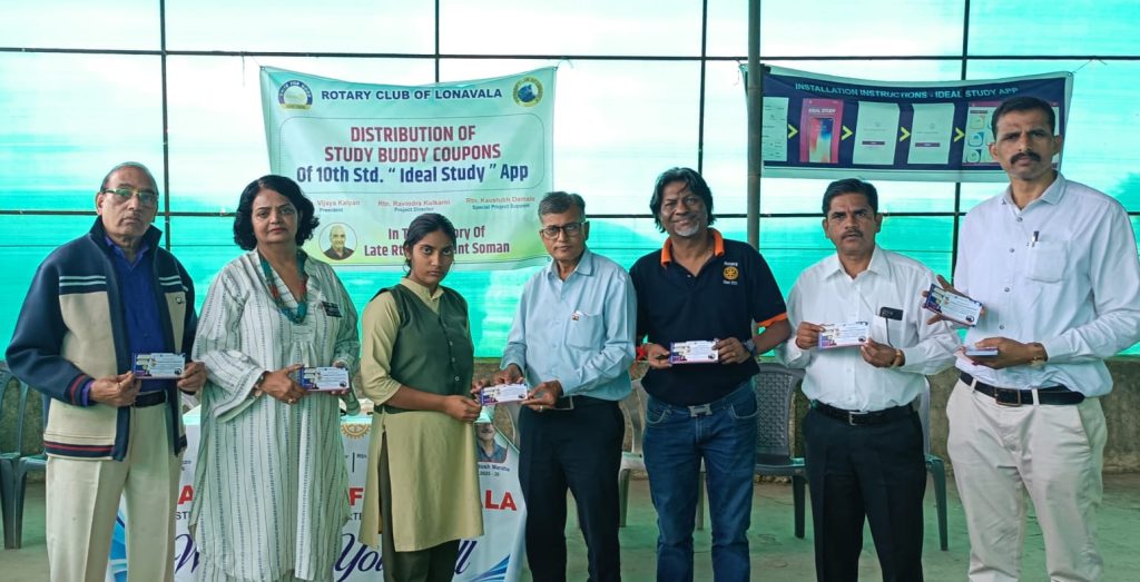 मावळ मराठा न्युज- दिनांक १४ ऑगस्ट रोजी स्वर्गीय वामनराव हैबतराव देशमुख माध्यमिक विद्यालय करंडोली येथील दहावीच्या विद्यार्थ्यांना स्टडी बडी कुपन हे वितरण करण्यात आले रोटरीच्या नूतन अध्यक्ष विजया कल्याण पाच प्रेसिडेंट नितीन कल्याण प्रोजेक्ट डायरेक्टर रवींद्र कुलकर्णी मुख्याध्यापक बापू पाटील देशमुख सर वगैरे उपस्थित होते 35 विद्यार्थ्यांना याचे प्रात्यक्षिक दाखवून कार्ड वितरित करण्यात आले वापरण्यास अतिशय सोपे असल्याने व सर्व विषयांचे सिल्याबस कव्हर झाल्याने विद्यार्थ्यांना अभ्यासात गोडी निर्माण होऊन विषयाचा सखोल अभ्यास करण्यास या ॲपची खूपच मदत होणार आहे शिक्षणाचा दर्जा उंचावण्यास व स्वतंत्र अभ्यास करण्यास ॲपची मदत होणार आहे. मुख्याध्यापक पाटील सर यांनी प्रास्ताविक केले रोटेरियन यांनी प्रात्यक्षिक दाखविले प्रोजेक्ट डायरेक्टर रवींद्र कुलकर्णी यांनी त्याचे महत्त्व विशद केले. अध्यक्ष विजया कल्याण यांनी मुलांना ॲप वापरून प्रगती करण्याचा व शाळेचे नाव उज्वल करण्याचा संदेश दिला.