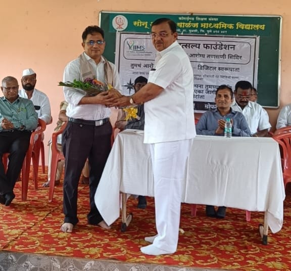 मावळ मराठा न्युज-आंबावणे,पुणे शहरातील नामवंत हौस्पिटल IIMS व जाई वात्सल्य फाउंडेशन पुणे महाराष्ट्र. आयोजित आरोग्य शिबीर आंबवणे येथे कोराईगड शिक्षण संस्था संचालित सोनू अनाजी वाळंज माध्यमिक विद्यालय येथे सपन्न झाले. विज्ञानातील प्रगतीचे आरोग्य विषयक तंत्रज्ञान विकासात दिसून आले. नवनिर्माण चे उत्तम उदाहरण म्हणून एकाच मशीन द्वारे मानवी शरीरातील ६० पेक्षा अधिक चाचण्या शिबिरात आणलेल्या मशीन द्वारे केल्या. व त्याचा आरोग्य अहवाल १० मिनिटाच्या आत आपल्या मोबाईल व्हाट्सअप,जीमेल वर कळवला जातो. आणि पुढील डायट प्लॅन सांगितला जातो.अशी माहिती डॉ. प्रवीण गडशिंग यांनी सांगितले.ते म्हणाले कि, भविष्यात या मशीन च्या वापरामुळे गोरगरीब जनतेला जास्त खर्च येणार नाही. व आमच्या सारख्या डॉकटर्स ला जनतेची सेवा करण्याची संधी या निमित्त मिळेल.या प्रसंगी निवृत्त RTO मा. हरिश्चन्द्र गडशिंग, कोराईगड शिक्षण संस्थेचे अध्यक्ष व जेष्ठ समाजसेक मा. नंदकुमार वाळंज, डॉ. प्रवीण गडशिंग, मा. आदर्श सरपंच सौं. वत्सलाताई वाळण, सामाजिक कार्यकर्ते सुरेशदादा कालेकर डॉ प्रवीण गडशिंग, डॉ विक्रम पाटोळे,डॉ. रोहिणीताई गडशिंग, डॉ सुहाशिनी घाणेकर, डॉ महेश तांगडे,, श्रीशा शेट्टी, अमोल मोरे, दीपक पाटील मान्यवर व IIMS हौस्पिटल टीम उपस्थित होती.या शिबिरात दोनसे विद्यार्थी तपासणी करण्यात आली. तसेच शंभर पेक्षा जास्त जेष्ठ नागरिकांची मशीन द्वारे तपासणी केली. व लगेंच रिपोर्ट देण्यात आला. या कार्यक्रमात पालक वर्ग पंचक्रोशी तील आजी – माजी सरपंच, उपसरपंच,सदस्य पोलीस पाटील वयोरुद्ध नागरिक उपस्थित होते.शिक्षक श्री संजय कुलथे यांनी सूत्रसंचालन केले, मुख्याध्यापक श्री भटू देवरे यांनी IIMS हौस्पिटल चे व जाई वात्सल्य फाऊंडेशन यांचे मनस्वी आभार मानले.विद्यालयातील सर्व शिक्षक कर्मचारी यांनी कर्यक्रम यशस्वी होण्यासाठी प्रयत्न केले.